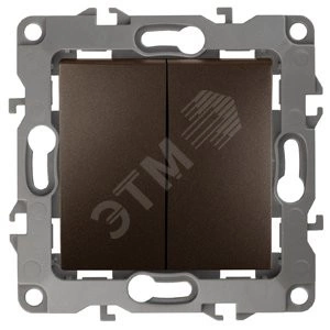 Выключатель 2-клавишный серии Эра 12 скрытой установки механизм цвет бронза 12-1104-13. Номинальные характеристики 10А 250В . Сделан из поликарбоната, оснащено автоматическими клеммами для быстрой и надёжной фиксации жил кабеля в механизме. Парные клеммы обеспечивают соединение шлейфом. Монтаж в подрозетник производится и на лапки, и на винты. Рамки приобретаются отдельно. Рамки Эра 12: 1 пост 12-5001-хх, 2 поста 12-5002-хх, 3 поста 12-5003-хх, 4 поста 12-5004-хх, 5 постов 12-5005-хх. Рамки Эра 12 Сатин: 1 пост 12-5101-хх, 2 поста 12-5102-хх, 3 поста 12-5103-хх, 4 поста 12-5104-хх, 5 постов - 12-5105-хх (хх - код цвета: 01-белый, 02-слоновая кость, 03-алюминий, 04-шампань, 05-антрацит, 06-чёрный, 07-ольха(белёный дуб-сатин), 08-вишня, 09-дуб, 10-венге, 11-сосна, 21-жёлтый, 22-оранжевый, 23-красный, 24-охра, 25-бордо, 26-лайм, 27-зелёный, 28-голубой, 29-синий).