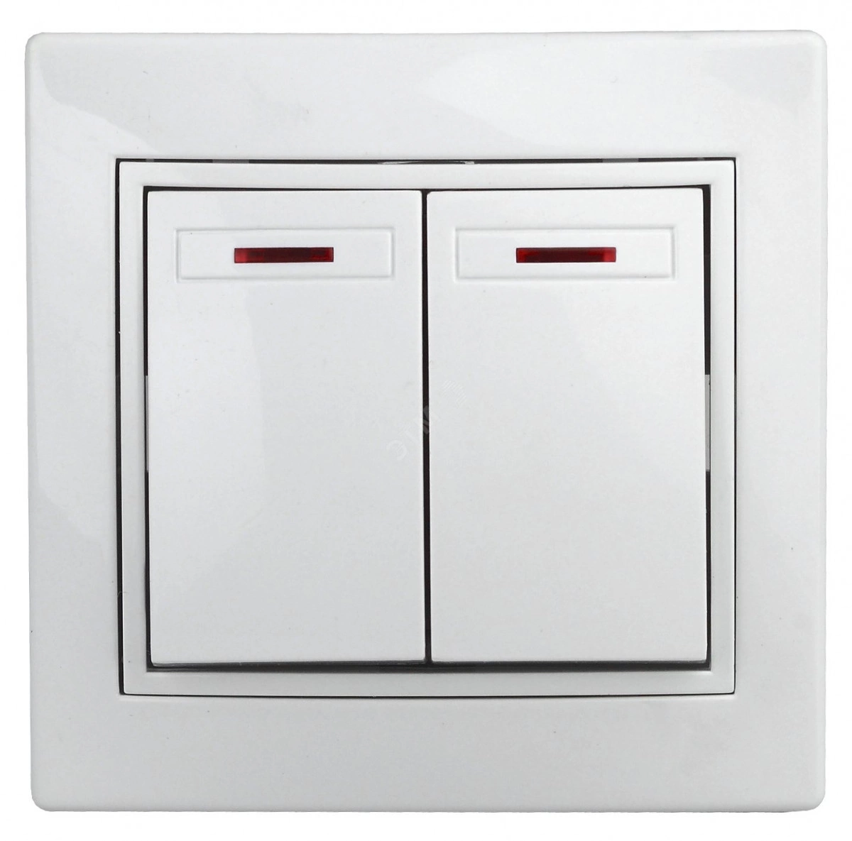 Полное описание: Выключатель двойной с подсветкой, 10А-250В, СУ, б.л., Plano, белый,1Э-105-01