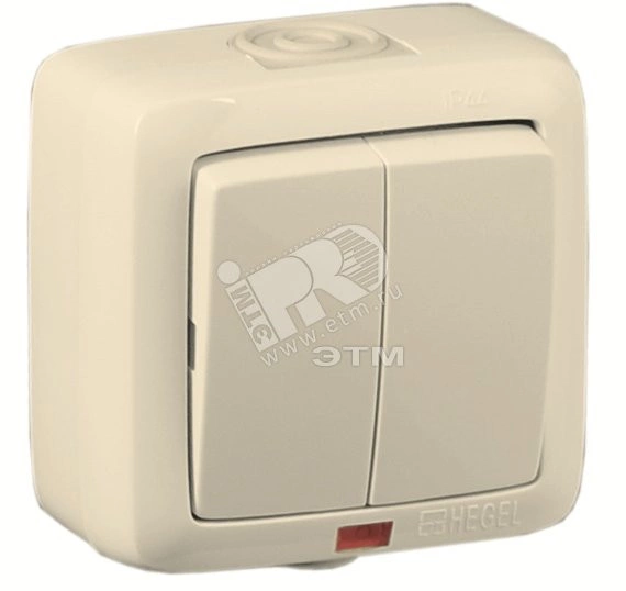 Выключатель двухклавишный наружный с индикацией слоновая кость IP44 10А