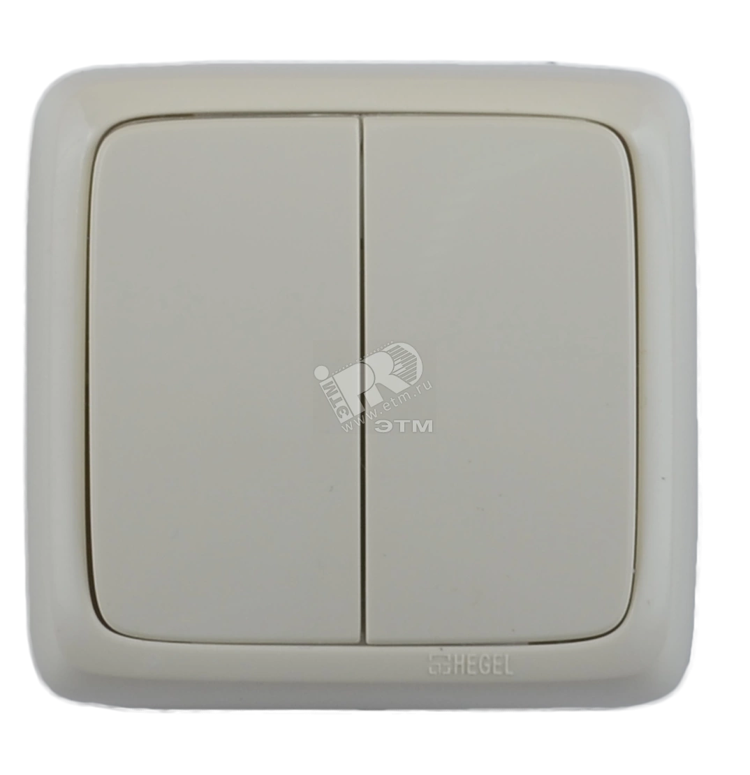Выключатель двухклавишный наружный с изоляционной пластиной слоновая кость 10А