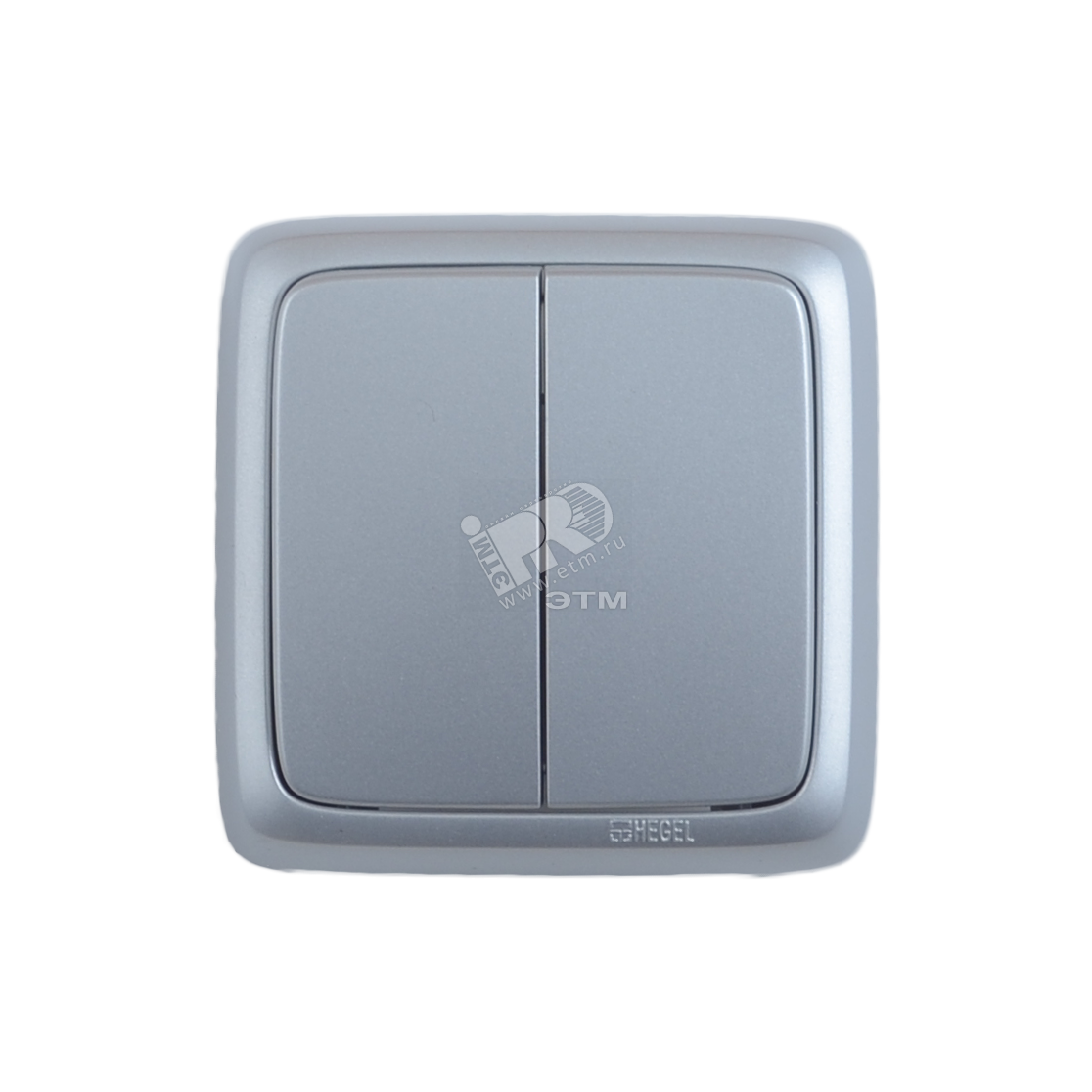 Выключатель двухклавишный наружный с изоляционной пластиной с индикацией серебро 16А