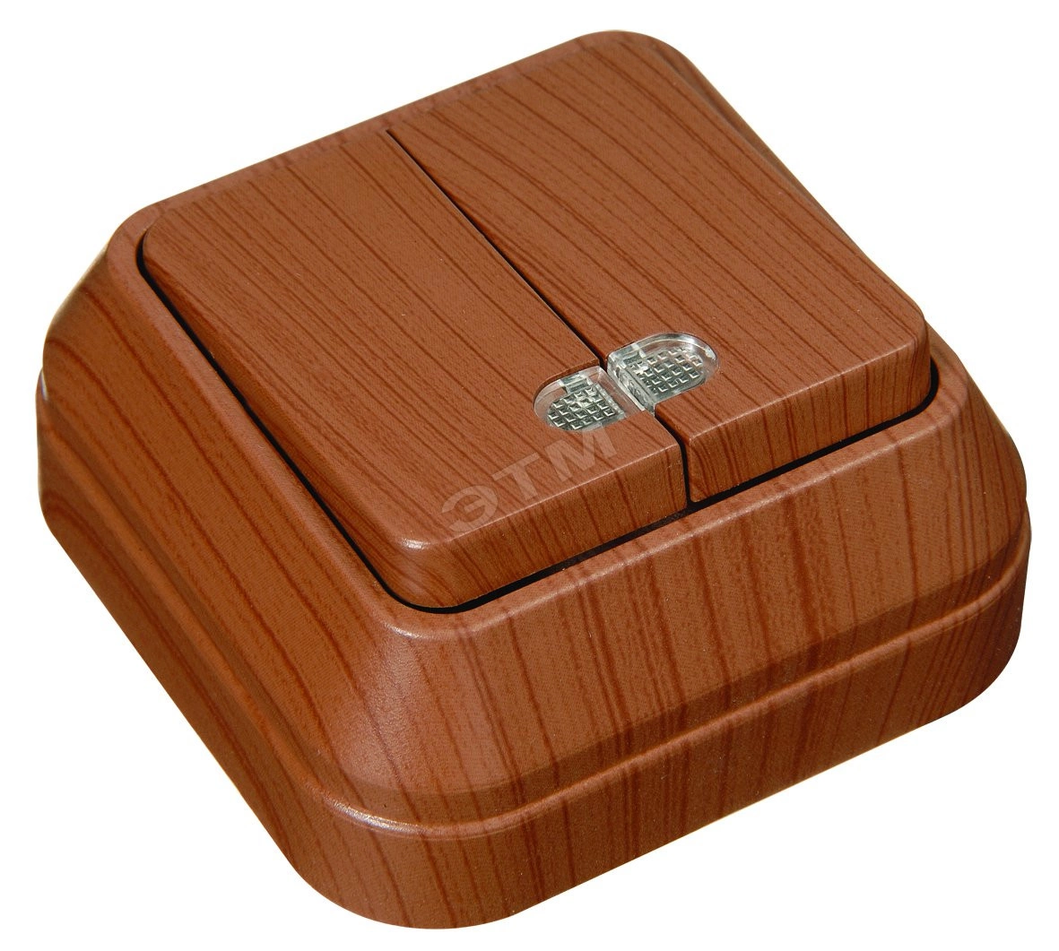 Полное описание: Выключатель двухклавишный наружный с подсветкой орех