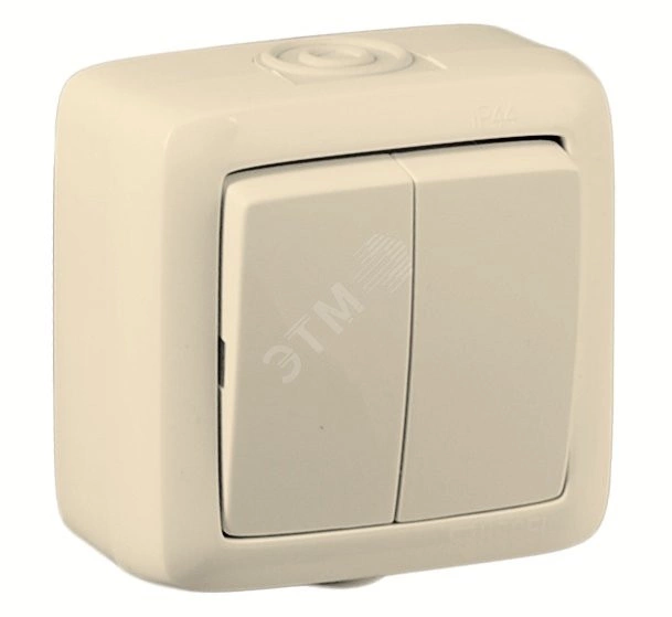 Выключатель двухклавишный наружный слоновая кость IP44 10А