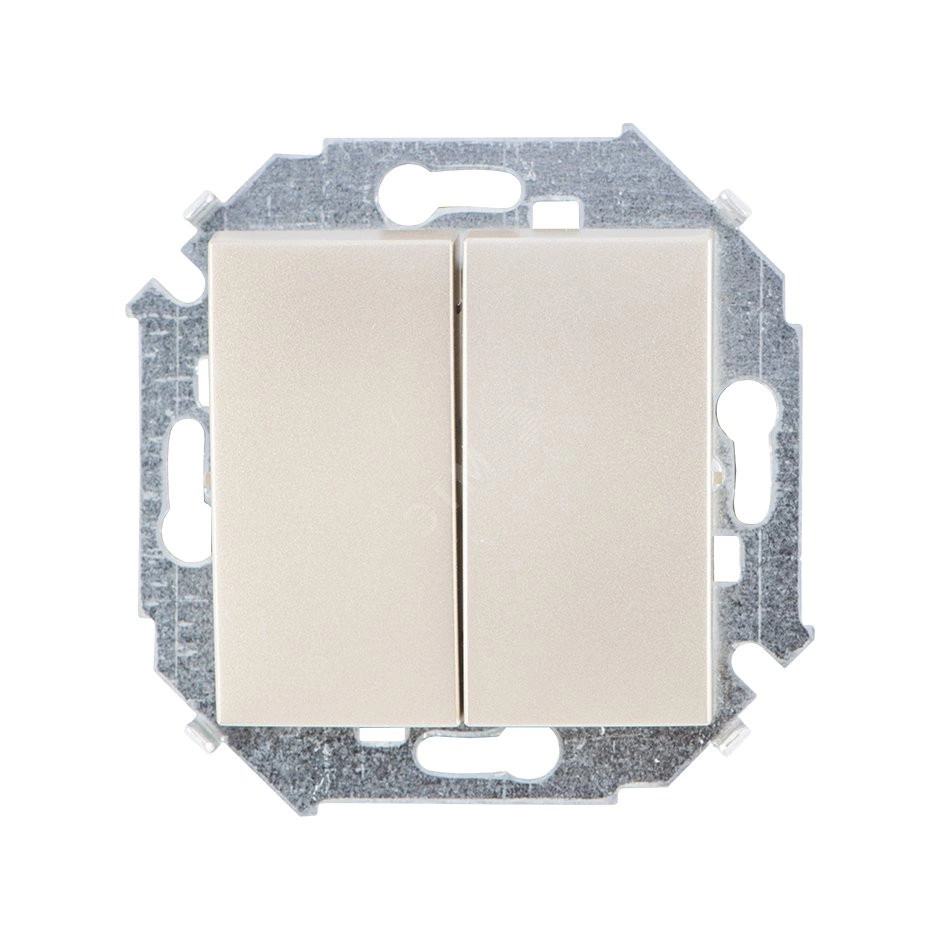 Выключатель двухклавишный проходной (переключатель), 16А, 250В, винтовой зажим, шампань