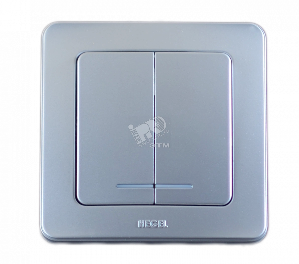 Выключатель двухклавишный скрытый с индикацией серебро 10А