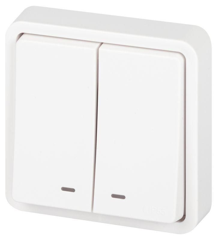 Полное описание: Выключатель Эксперт 11-1525-01 двойн. с подсветкой IP55 10АХ-250В СУ бел. Эра Б0063304