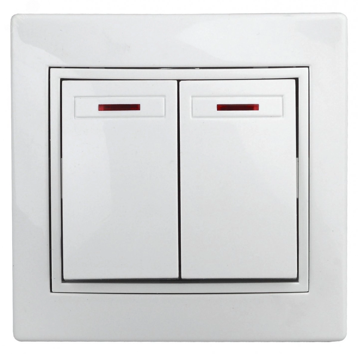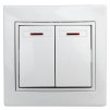 Выключатель Intro Plano 1-105-01 двухклавишный с подсветкой, 10А-250В, IP20, СУ, Plano, белый