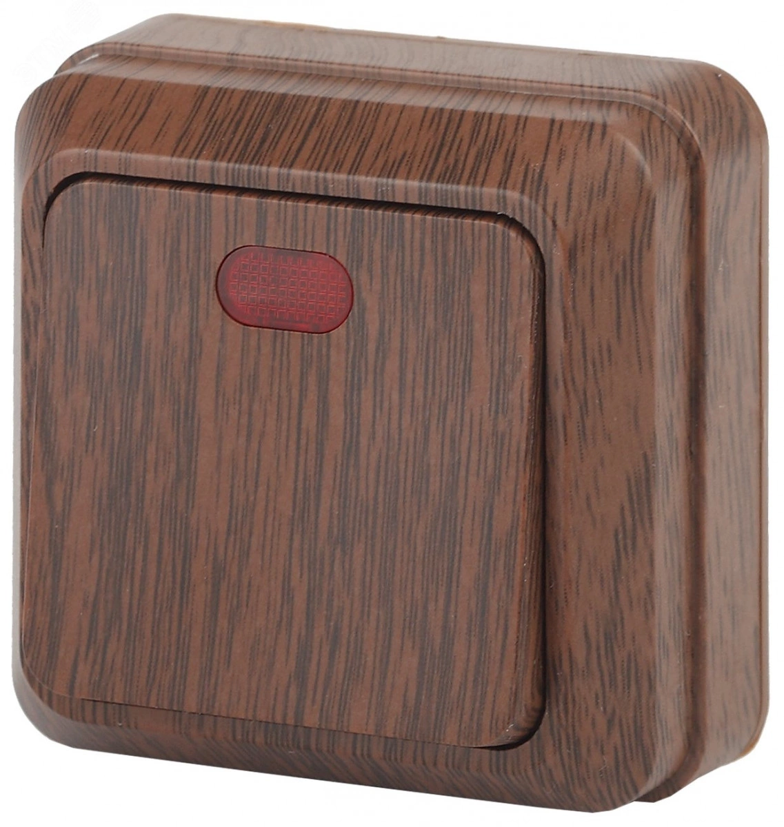 Выключатель 1-клавишный с подсветкой серии Intro Quadro открытой установки цвет венге 2-102-10. Номинальные характеристики 10А 250В . Выключатель выполнен из качественного термопласта, стали и латуни, оснащён винтовыми зажимами. Другие устройства серии вы можете найти, введя в поиск Intro Quadro.