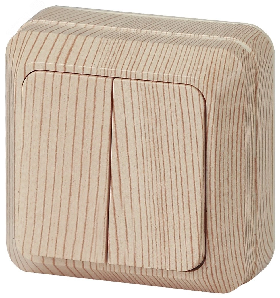 Выключатель 2-клавишный серии Intro Quadro открытой установки цвет сосна 2-104-11. Номинальные характеристики 10А 250В . Выключатель выполнен из качественного термопласта, стали и латуни, оснащён винтовыми зажимами.
