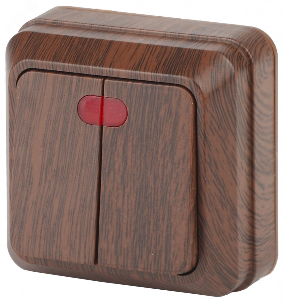 Выключатель двухклавишный с подсветкой для открытой установки из серии Intro Quadro. Устройства Quadro Эконом поставляются без монтажных пластин. Монтаж механизма производится сразу на поверхность стены.