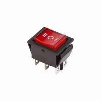 Выключатель клавишный 250V 15А (6с) ON-OFF-ON красный с подсветкой и нейтралью предназначен для коммутации электрических цепей переменного тока напряжением до 250В. Клавишные (Рокерные) выключатели применяются в качестве комплектующих изделий различного электрооборудования (в сетевых фильтрах и удлинителях, аудио-оборудовании, блоках питания, электроустановках на различных производствах, автомобилях, и многих других местах). Такой клавишный переключатель имеет три положения. Принцип действия основан на перемещении клавиши в одну из позиций. Для переключения в нужное положение требуется приложить некоторые усилия на клавишу. Монтаж осуществляется без применения винтов на плоских панелях толщиной от 0.8мм до 3мм. Подключение контактов осуществляется плоской клеммой 6.6мм, либо с помощью пайки.