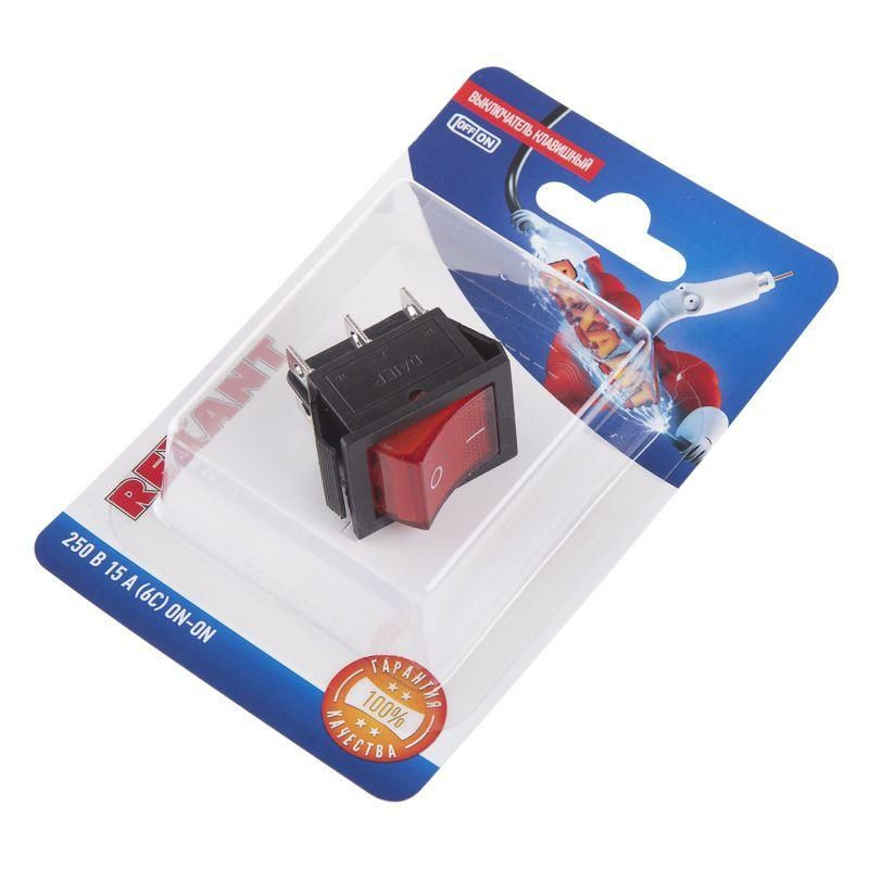 Выключатель клавишный 250В 15А (6с) ON-ON красн. с подсветкой (RWB-506 SC-767) блист. Rexant 06-0305-B