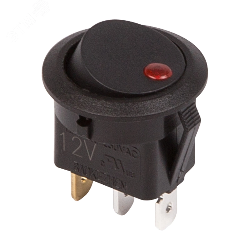 Выключатель клавишный круглый 12V 16А (3с) ON-OFF красный с подсветкой предназначен для коммутации электрических цепей напряжением 12В. Клавишные (Рокерные) выключатели применяются в качестве комплектующих изделий различного электрооборудования (аудио-оборудовании, блоках питания, электроустановках на различных производствах, автомобилях, и многих других местах). Такой клавишный переключатель имеет два положения. Принцип действия основан на перемещении клавиши в одну из позиций. Для переключения в нужное положение требуется приложить некоторые усилия на клавишу. Монтаж осуществляется без применения винтов на плоских панелях толщиной от 0.8мм до 3мм. Подключение контактов осуществляется плоской клеммой, либо с помощью пайки.