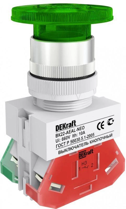 Полное описание: Выключатель кнопочный "Грибок" AEAL ВК-22 d22мм с фиксацией зел. SchE 25033DEK