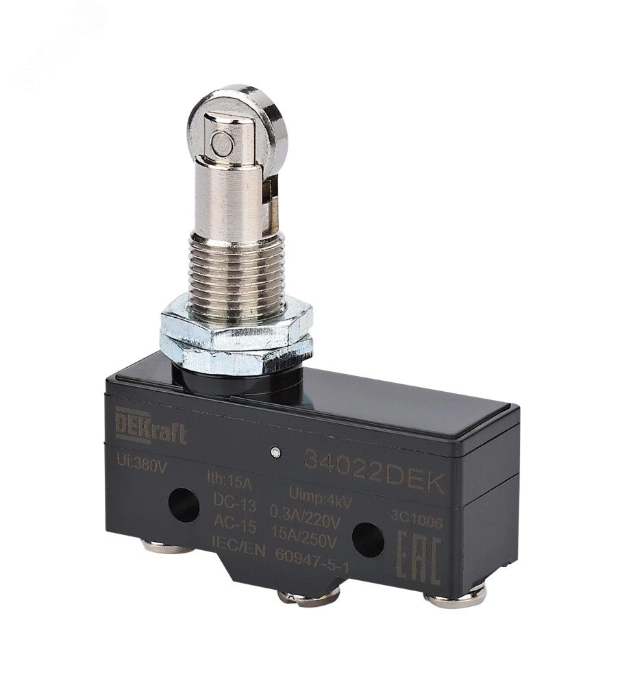 Миниатюрный концевой выключатель с группой контатков 1НО1НЗ, роликовый плунжерный тип, имеет термопластичный корпус с двойной изоляцией, модульную конструкцию, облегчающую техническое обслуживание, а также компактную форму (в соответствии с DIN EN 50047-2020). Степени защиты IP65 и IK04 обеспечивают ударопрочность, что делает его идеальным для интенсивного использования в тяжелых условиях эксплуатации. Выключатель крепится на оборудование при помощи монтажных винтов с метрической или самонарезной резьбой и имеет электрическую изностойкость не менее 500 тысяч циклов в категории DC-13, он соответствует стандартам ГОСТ IEC 60947.-5-1, ГОСТ IEC 60204-1
