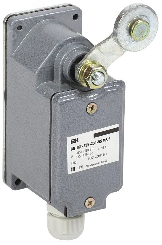 Выключатель концевой ВП 16Г-23Б-231-55 У2.3, рычаг с роликом, ход вправо, cамовозврат, 1з+1р, IP55, IEK