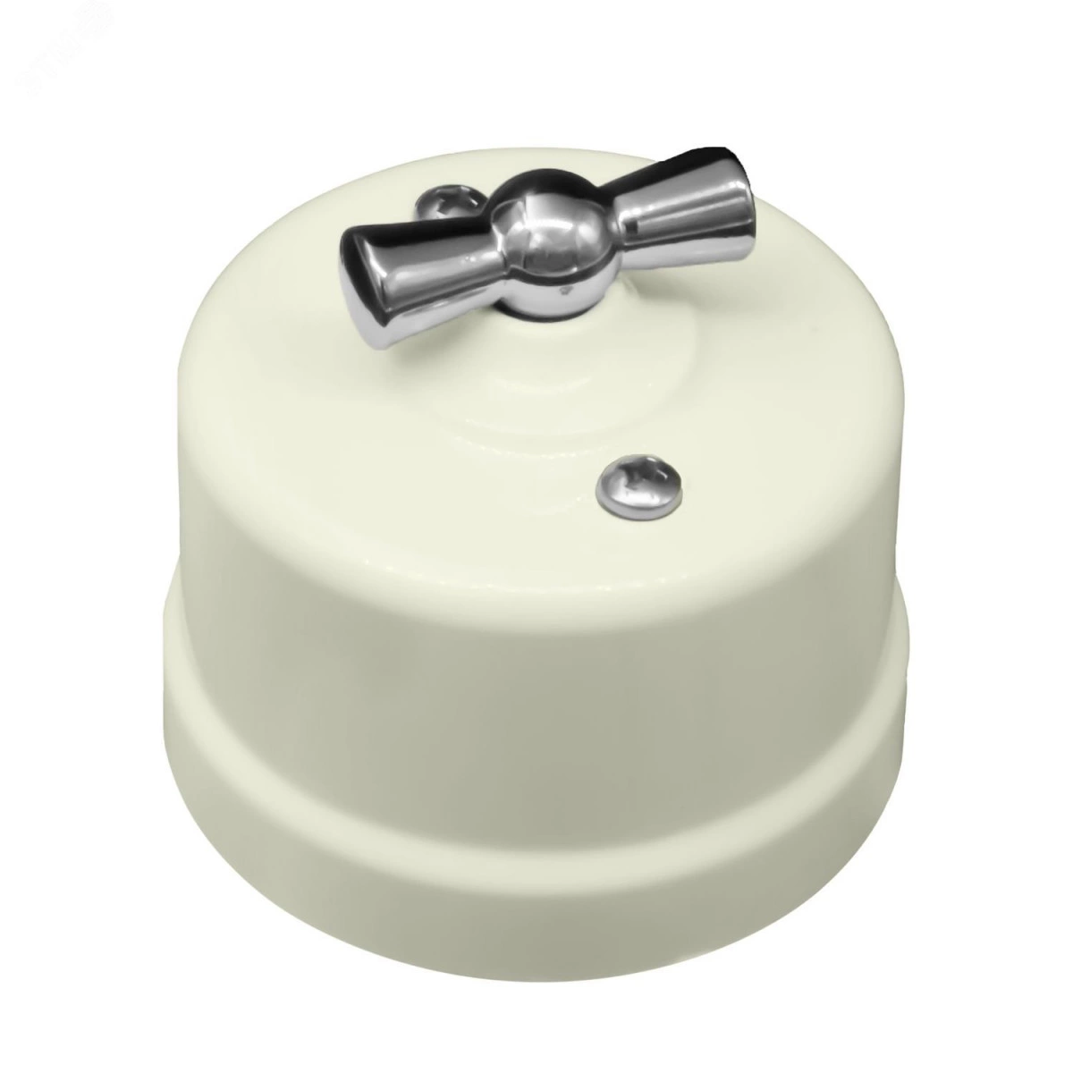 Полное описание: Выключатель Лизетта 1-кл., перекрестный, пластик, цвет Слоновая кость, Серебро
