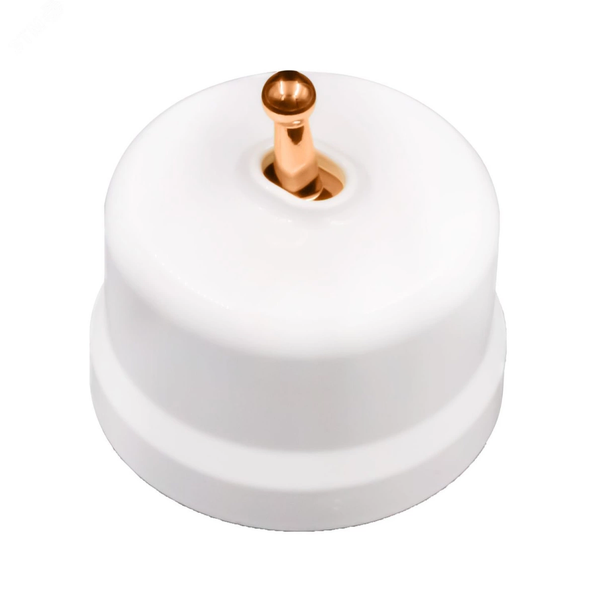 Полное описание: Выключатель Лизетта 1-кл. проходной, пластик, цвет Белый, Медь (тумблерный)