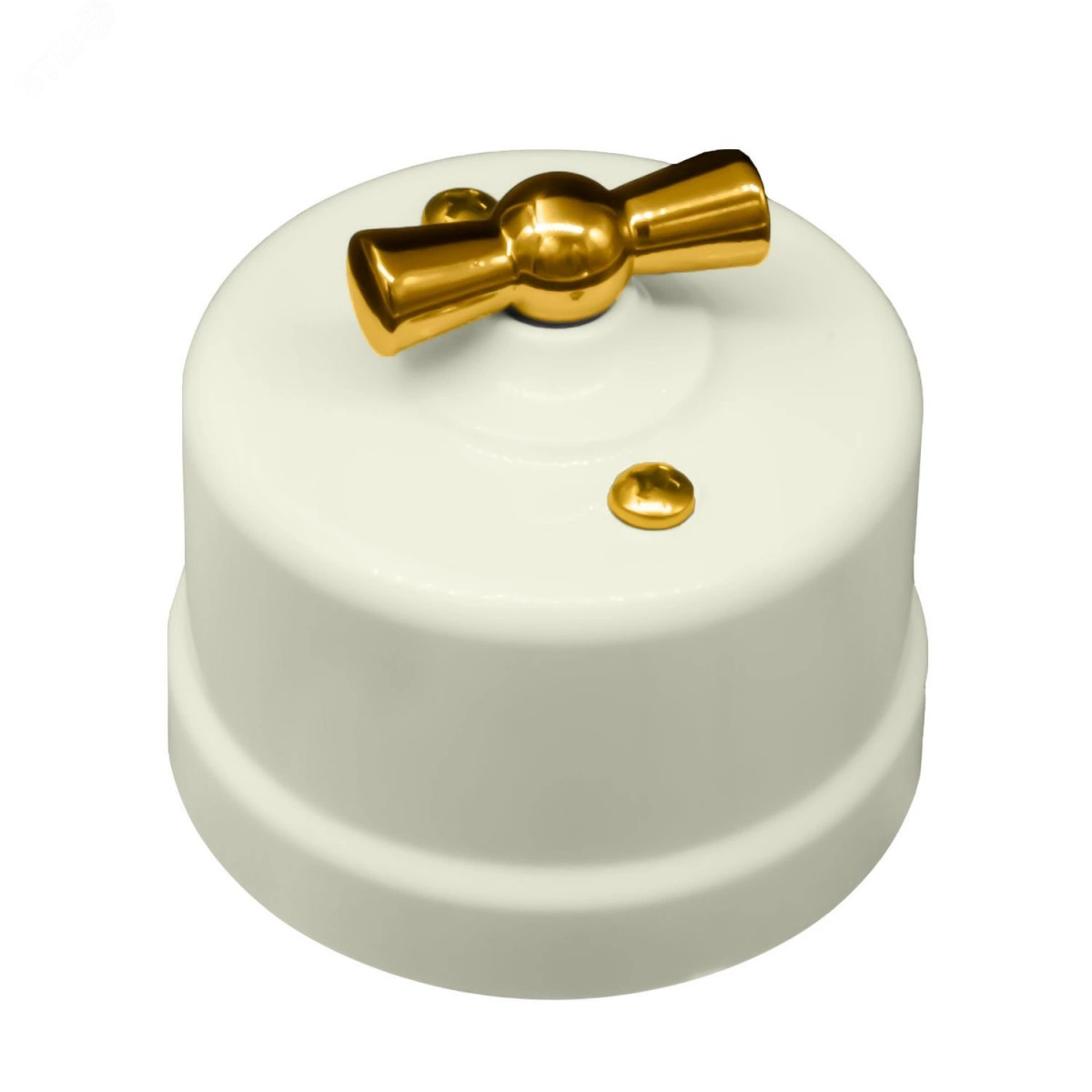 Полное описание: Выключатель Лизетта 1-кл., проходной, пластик, цвет Слоновая кость, Золото