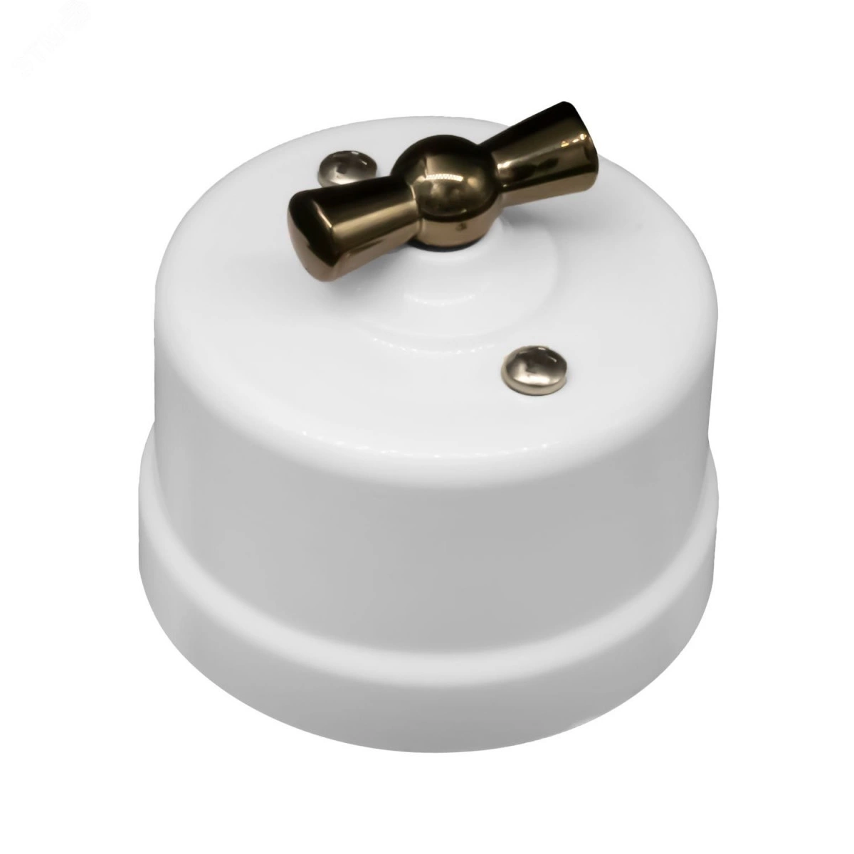 Полное описание: Выключатель Лизетта 1-кл., проходной, пластик, цвет Белый, Бронза