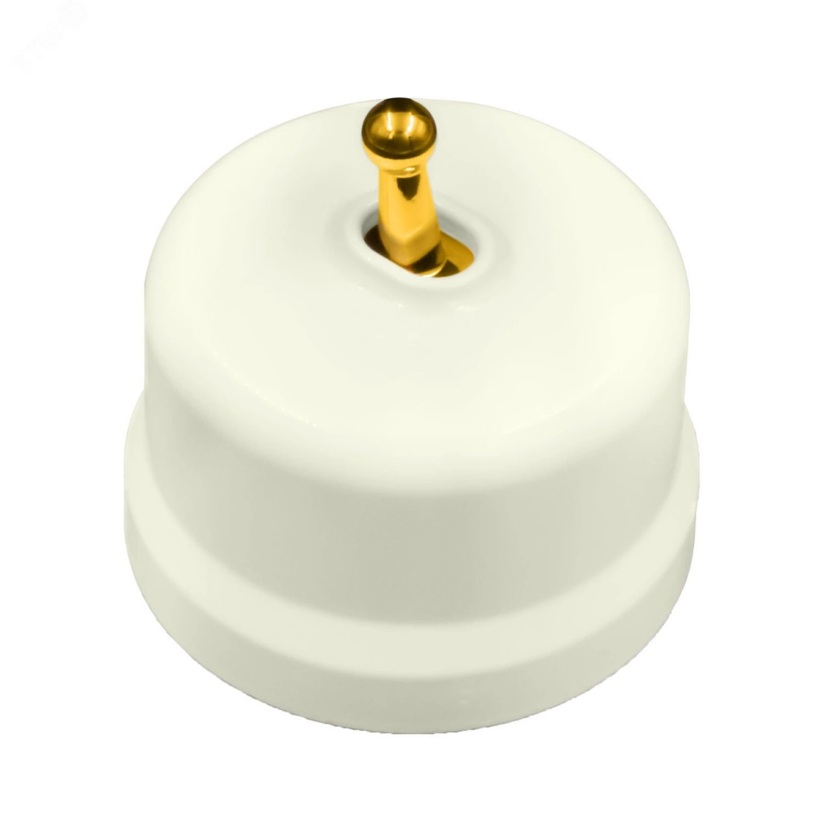 Полное описание: Выключатель Лизетта 1-кл. проходной, пластик, цвет Слоновая кость, Золото (тумблерный)
