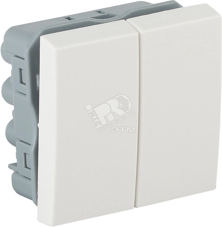 Полное описание: Выключатель модульный двухклавишный 45х45мм белый