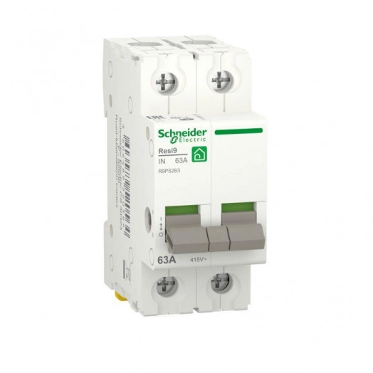 Выключатели нагрузки (рубильники) Resi9предназначены для разрыва электрической цепи под нагрузкой. В коллекции Resi9 представлены выключатели от 1 до 4 полюсов с номинальным током 40А и 63А.