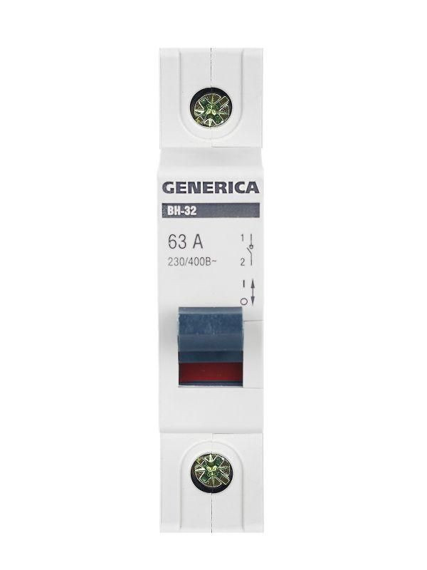 Полное описание: Выключатель нагрузки (мини-рубильник) 1п 63А ВН-32 GENERICA MNV15-1-063