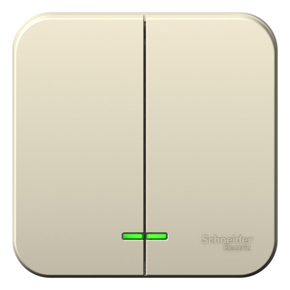Выключатель Systeme Electric (ранее Schneider Electric) BLANCA (молочный, открытой установки) двухклавишный предназначен для сетей до 250В, на ток до 10А. Подсветка делает его легко находимым в отсутствие освещения. Двухклавишный выключатель позволяет управлять двумя источниками света из одной точки.
