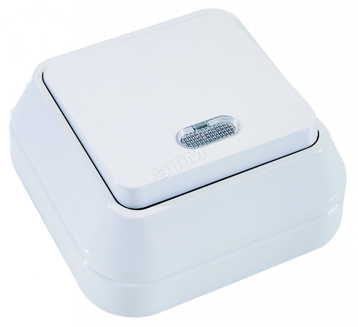 Полное описание: Выключатель одноклавишный наружный проходной белый с подсветкой