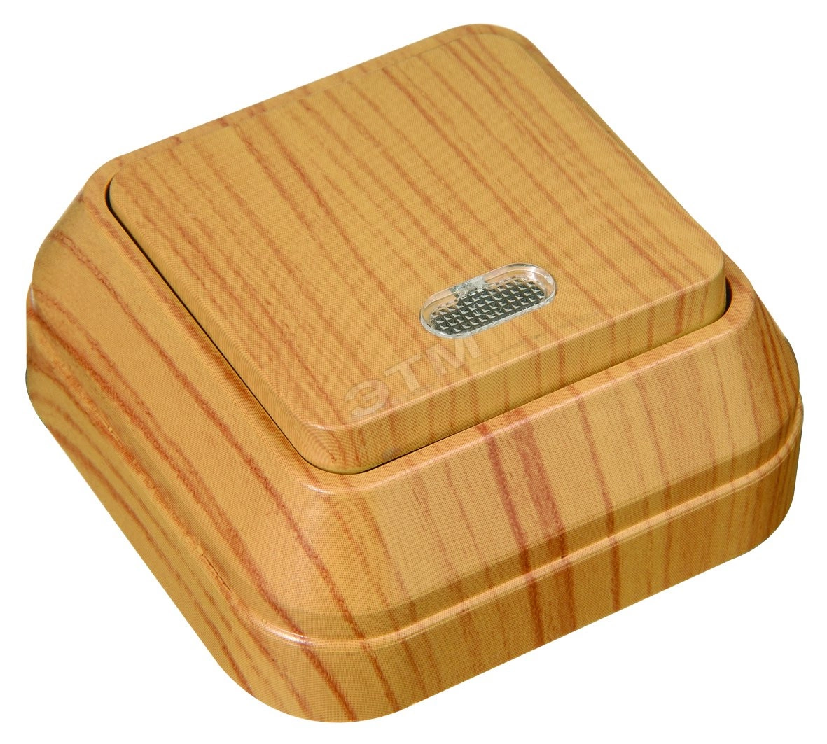 Полное описание: Выключатель одноклавишный наружный с подсветкой дуб