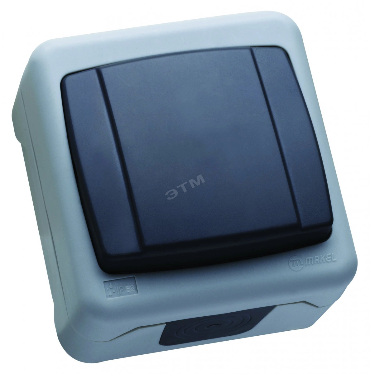 Выключатель одноклавишный проходной IP55 (пружинный зажим) герметичный серый