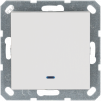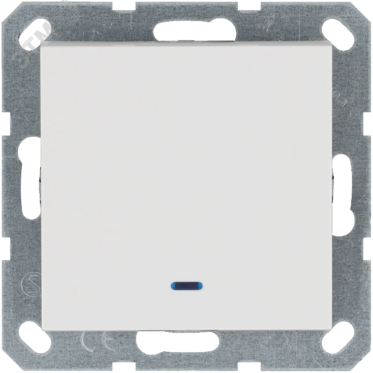 Выключатель одноклавишный проходной со светодиодом 10A 250V~ с накладкой, цвет белый глянцевый
