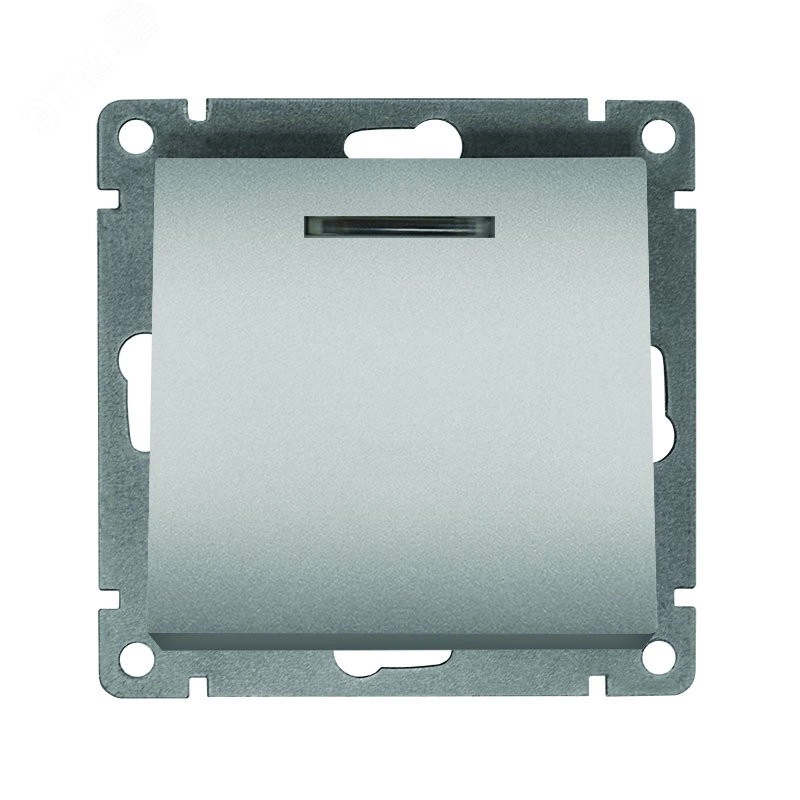Выключатель одноклавишный с подсветкой UNIVersal серия Афина , с/у, 10А, 220В, серебро (еврослот), механизм