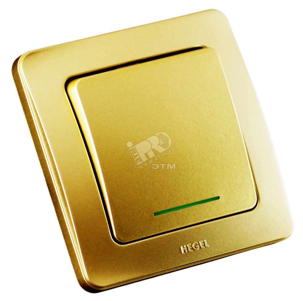 Выключатель одноклавишный скрытый с индикацией золото 16А
