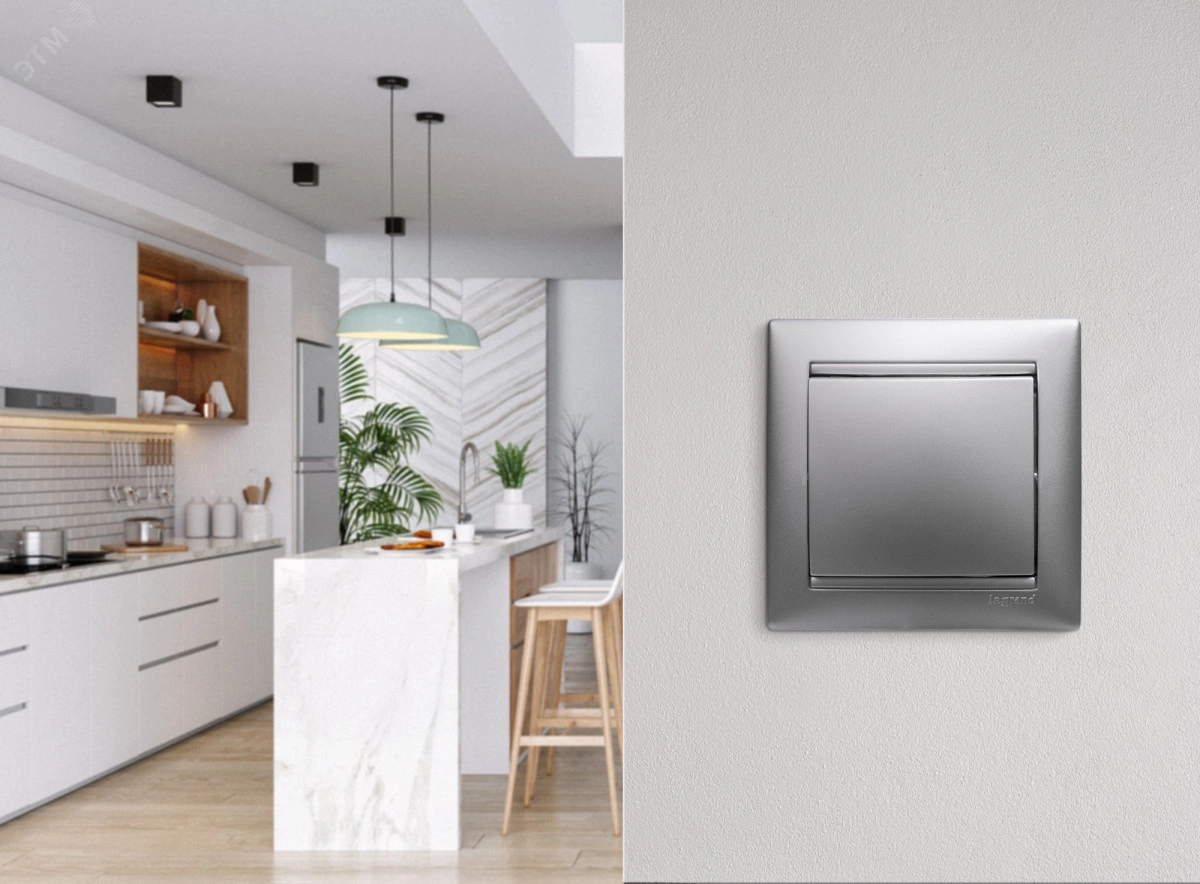 Выключатель одноклавишный - Legrand Valena - 10А 250В схема 1 безвинтовые зажимы - алюминий. Предназначен для установки в электрических сетях жилых и общественных зданий и используется для управления приборами освещения, вентиляции и т.д.