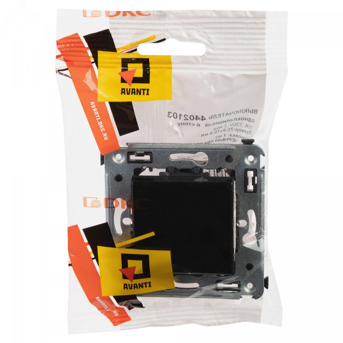 Одноклавишный выключатель ДКС используется для управлением контуром освещения. Выключатель предназначен для скрытого монтажа в стену. Номинальное напряжение – 230 В, номинальный ток – 16 А. Пластиковые части электроустановочного изделия имеют цвет 'Черный квадрат'.