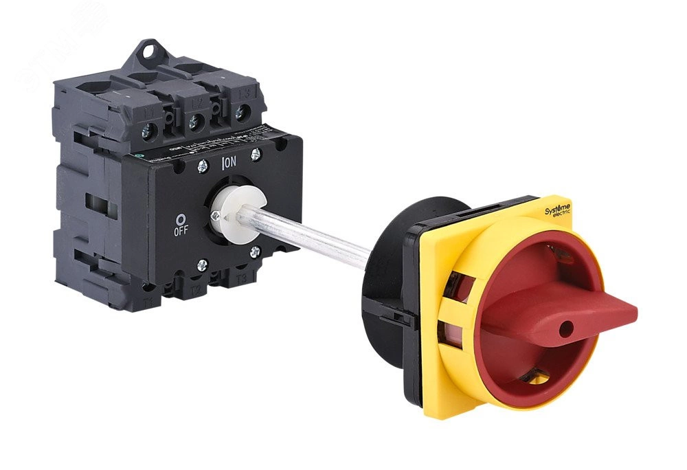Выключатель-разъединитель MSD на номинальный ток 100 А применяется для коммутации силовых электрических цепей активной, индуктивной или смешанной нагрузок, может использоваться для включения и отключения двигателей категорий применения AC–3 и DC–3. Может применяться в качестве главного и аварийного выключателя-разъединителя. 3-полюсное исполнение с красной выносной поворотной рукояткой с возможностью блокировки навесным замком, монтаж на DIN-рейку или монтажную плату на задней панели шкафа.