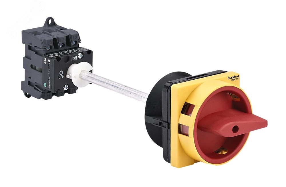 Выключатель-разъединитель MSD на номинальный ток 25 А применяется для коммутации силовых электрических цепей активной, индуктивной или смешанной нагрузок, может использоваться для включения и отключения двигателей категорий применения AC–3 и DC–3. Может применяться в качестве главного и аварийного выключателя-разъединителя. 3-полюсное исполнение с красной выносной поворотной рукояткой с возможностью блокировки навесным замком, монтаж на DIN-рейку или монтажную плату на задней панели шкафа.