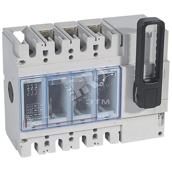 Полное описание: Выключатель-разъединитель DPX-IS 630 без дистанционного отключения 400А 3П рукоятка спереди