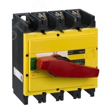 Выключатель-разъединитель INS400 3п красная рукоятка/желтая панель