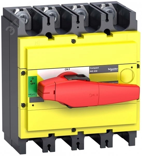 Выключатель-разъединитель INS630 4п красная рукоятка/желтая панель