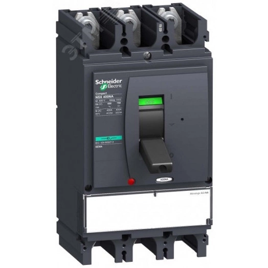 Выключатель-разъединитель Compact NSX400NA Schneider Electric, 3P, номинальный ток 400 А, ШхВхГ - 160x295x150 мм, стационарный, монтаж - на плате. Выключатели-разъединители Compact NSX имеют встроенную самозащиту от высоких токов КЗ. Выключатели-разъединители используют те же аксессуары и имеют те же возможности подключения, что и автоматические выключатели Compact NSX. Возможна взаимная блокировка выключателя-разъединителя с другим выключателем для реализации ввода резерва.