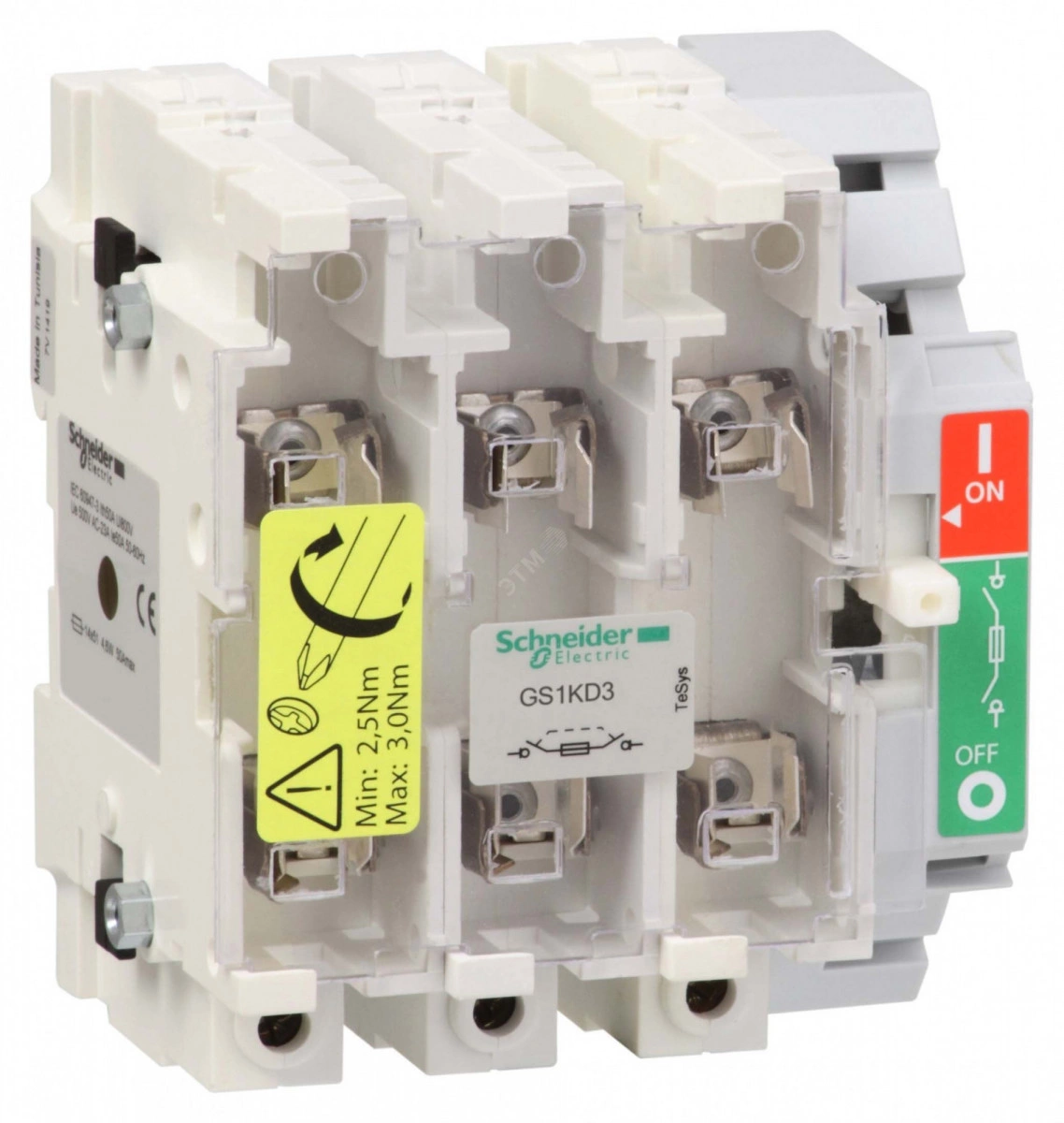 Выключатели-разъединители-предохранители TeSys GS предназначены для коммутации, защитного отключения и защиты нагрузок от сверхтока. Они могут устанавливаться, в частности, на вводе щитов управления и использоваться в качестве главных и аварийных выключателей. Аппараты обеспечивают мгновенное отключение. Имеется возможность блокировки замками и взаимной блокировки с дверью. Благодаря своей компактности аппараты могут устанавливаться внутри небольших оболочек, обеспечивая при этом выполнение функций коммутации и защиты цепей питания различного оборудования, включая генераторы или пускатели электродвигателей.