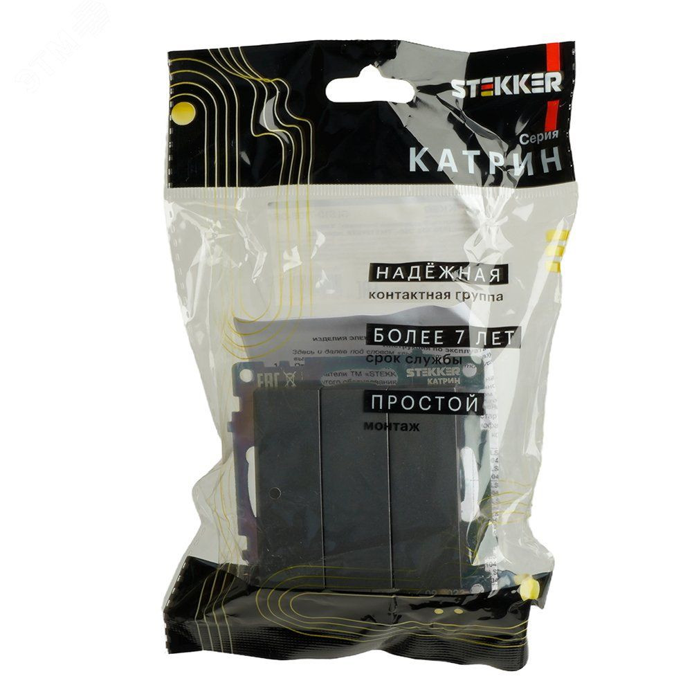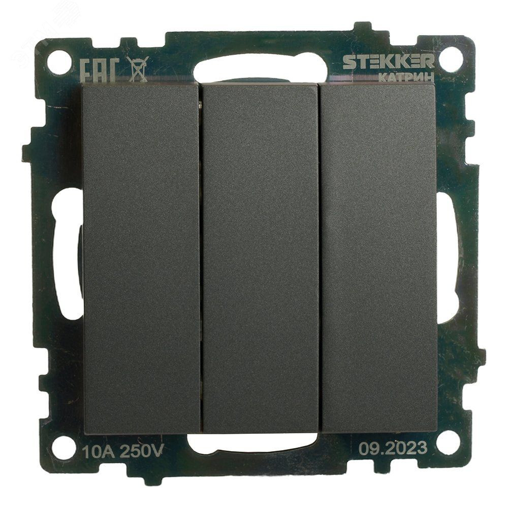 Выключатель трехклавишный (механизм) серия Катрин графит STEKKER