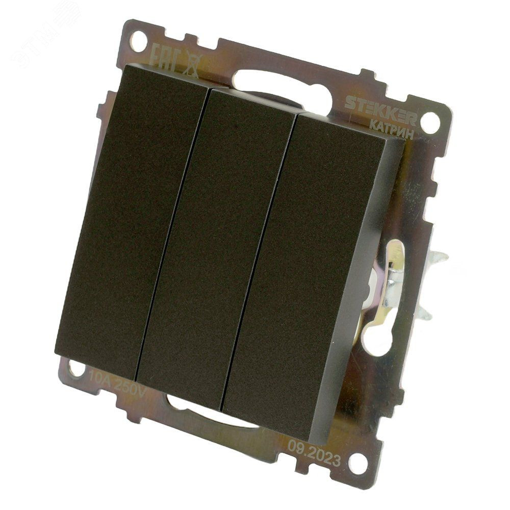 Выключатель трехклавишный (механизм) серия Катрин шоколад STEKKER