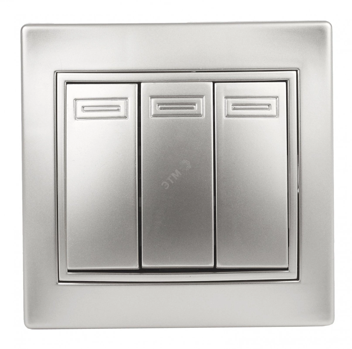 Выключатель тройной, 10А-250В, СУ, Plano, алюминий,1-106-03