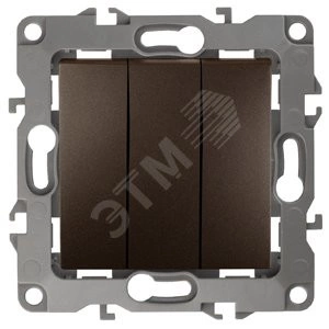 Выключатель 3-клавишный серии Эра 12 скрытой установки механизм цвет бронза 12-1107-13. Номинальные характеристики 10А 250В . Сделан из поликарбоната, оснащён винтовыми уникальными клеммами ЭКСПЕРТ для надёжной фиксации жил кабеля в механизме. Парные клеммы обеспечивают соединение шлейфом. Монтаж в подрозетник производится и на лапки, и на винты. Рамки приобретаются отдельно. Рамки Эра 12: 1 пост 12-5001-хх, 2 поста 12-5002-хх, 3 поста 12-5003-хх, 4 поста 12-5004-хх, 5 постов 12-5005-хх. Рамки Эра 12 Сатин: 1 пост 12-5101-хх, 2 поста 12-5102-хх, 3 поста 12-5103-хх, 4 поста 12-5104-хх, 5 постов - 12-5105-хх (хх - код цвета: 01-белый, 02-слоновая кость, 03-алюминий, 04-шампань, 05-антрацит, 06-чёрный, 07-ольха(белёный дуб-сатин), 08-вишня, 09-дуб, 10-венге, 11-сосна, 21-жёлтый, 22-оранжевый, 23-красный, 24-охра, 25-бордо, 26-лайм, 27-зелёный, 28-голубой, 29-синий).