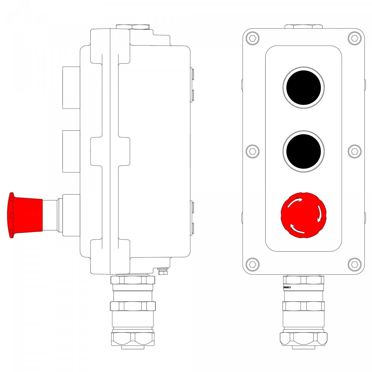 Взрывонепроницаемый пост управления из алюминия LCSD-03-B-MB-P1B(11)x1-P1B(11)x1-P6R(11)x1-PBMB-ANP15BMB