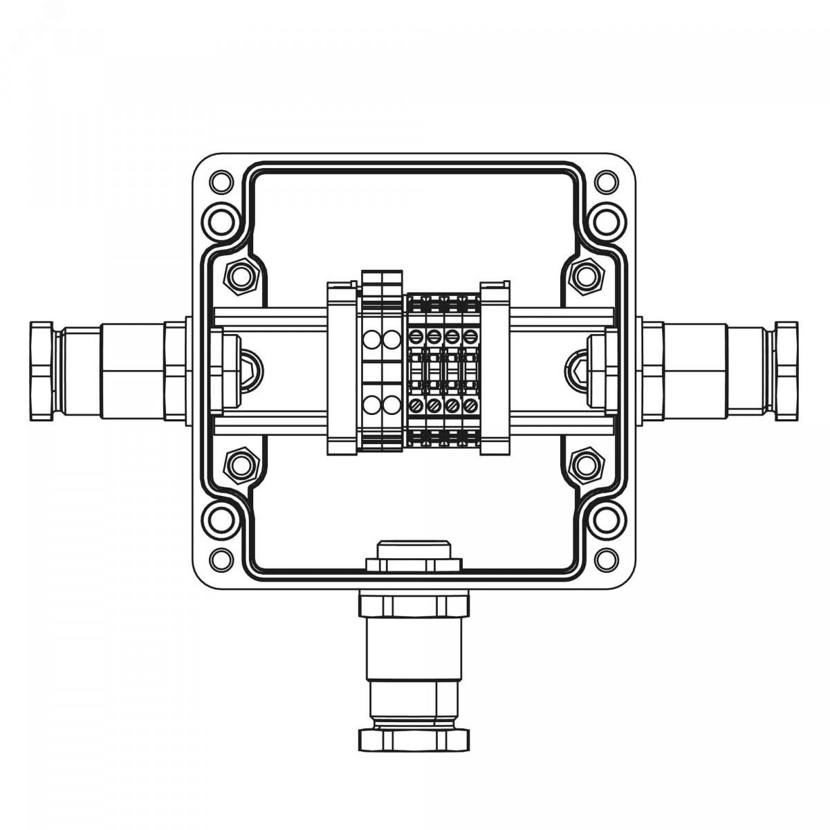 Взрывозащищенная клеммная коробка из полиэстера TBE-P-03-(2xCBC.2-2xCBC.2 (i)-2xTEO.2)-1xKH2MHK(B)-1xKH2MHK(C)-1xKH2MHK (D)1Ex e IIC Т5 Gb / Ex tb IIIC T95°C Db IP66